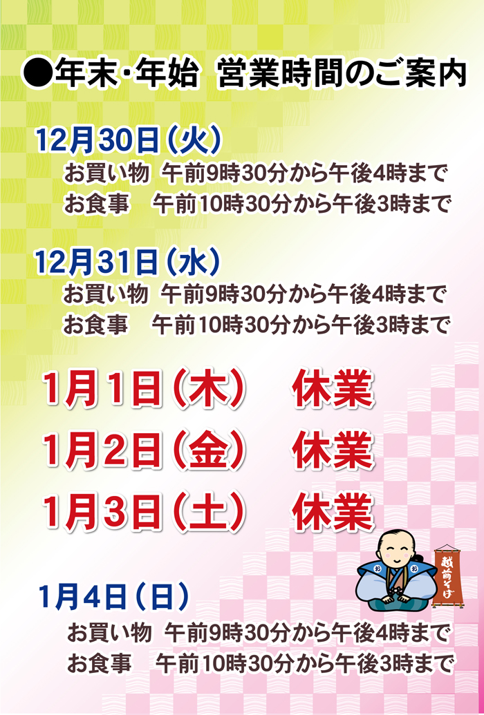 年末・年始の営業のご案内